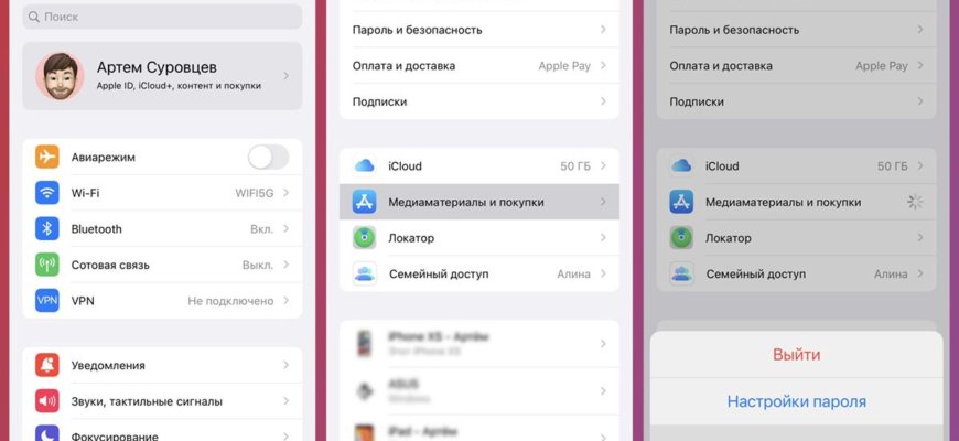 - Шаг 1: Выход из Apple ID