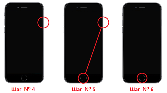 - Нажать и удерживать кнопку питания и кнопку домой в течение 10 секунд.